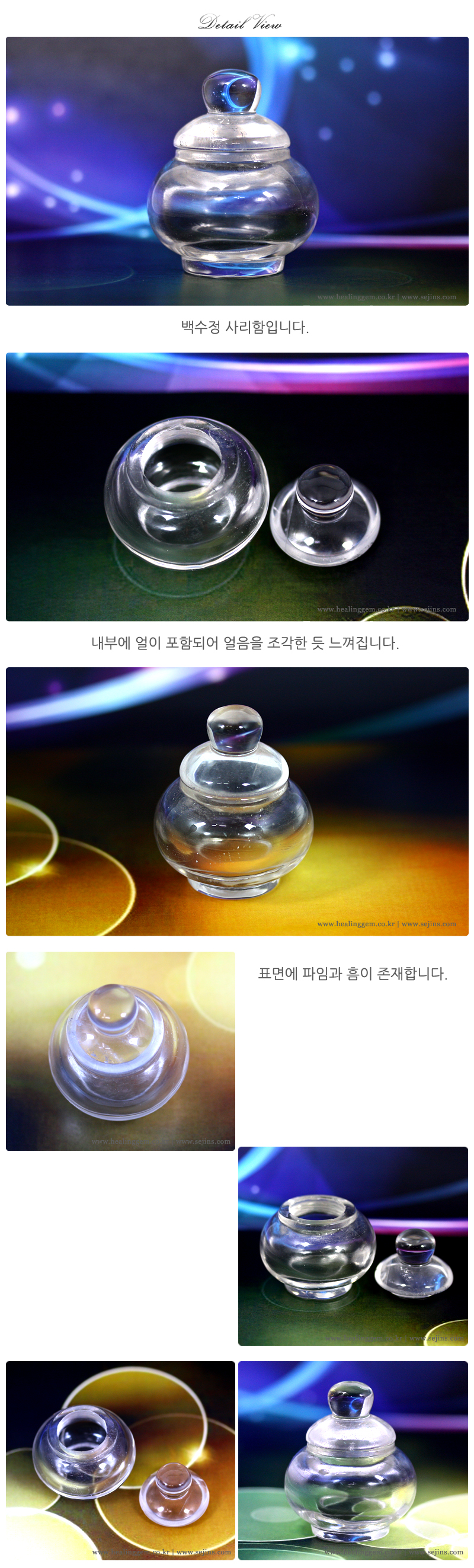 +백수정이란? 석영의 현정질을 수정이라 부르는데 그 현정질은 육정계로 대표되며, 결정이란 말은 수정의 결정으로 다 될 정도이다, 이 중에서 백색 투명한 것을 수정 혹은 백수정이라 부르며 산지에 따라 아리조나 다이아몬드, 다이아몬드, 코니쉬 다이아몬드 등의 명칭으로 쓰인다. 일본에서는 오래전부터 집을 지을 때 건물의 4모퉁이에 수정볼을 땅에 묻고 집을 짓고 있다. 이 의미는 여러 가지로 해석할 수 있다. 지진이 많은 일본에서 지진이나 재앙에 대한 부적의 개념으로도 백수정을 사용 할 수도 있고,
