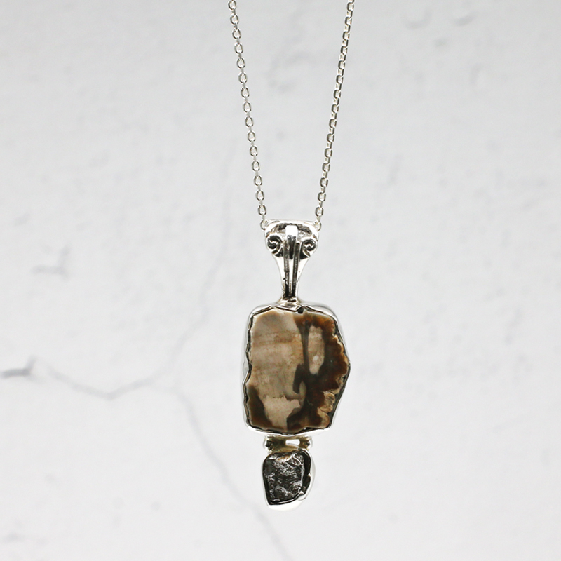 나무가 화석이 되어 멋스러운 무늬를 간직한 펜던트입니다.