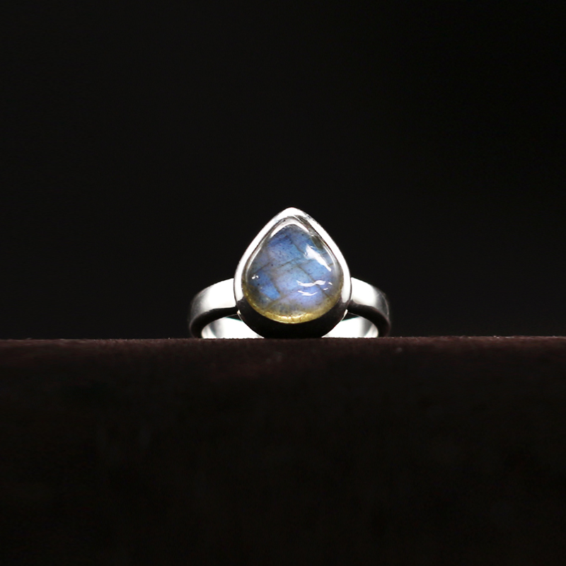 청색·녹색의 섬광이 나타나는 라브라도라이트 실버 반지입니다.