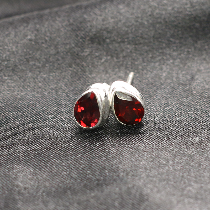 아름답게 컷팅되어 짙은 붉은색이 매력적인 분위기를 주는 가넷 실버 침 귀걸이 입니다.