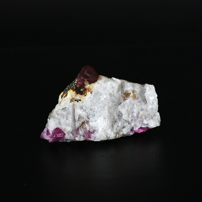흰색 대리석 모암 속에 그대로 박혀 있는 천연 루비 원석입니다.