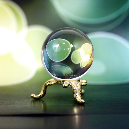 AA급 백수정 볼입니다. 한 켠에 약하게 얼이 분포된 정도로 상당히 맑고 깨끗한 편에 속하는 수정구입니다.