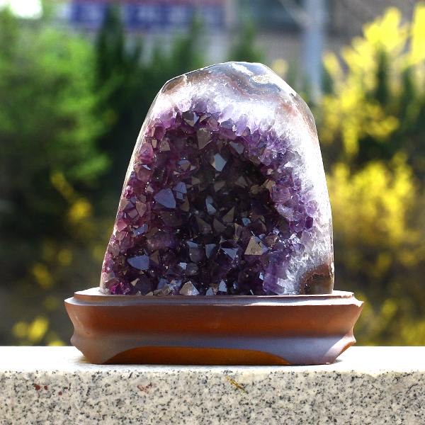 자수정이란? 자석영(紫石英)이라고 도 한다. 할로겐화물로서 플루오르화칼슘을 주성분으로 하는 형석이다. 연한 자줏빛이 나고, 투명하다. 색이 짙고 아름다운 것은 보석이 된다. 가열하면 탈색하여 무색으로 변하기 도 하고, 또 변색하여 황색으로 되기도 한다. 자주색을 띠는 원인은 이산화철을 함유하고 있어서이며, 산화철의 함량이 많을수록 색이 진해진다. 주산지는 우랄 산지·브라질 우루과이·한국·미국·인도·스리랑카 등이다. | ||||||||||||||||||||||||||||||||||||||||||