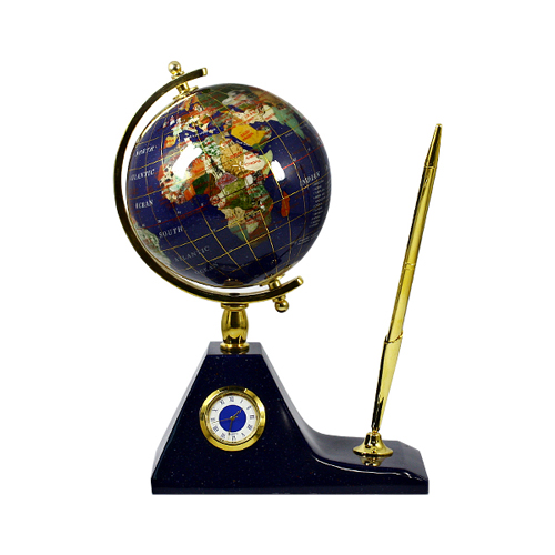 천연보석 지구본입니다. 시계와 펜은 장식입니다.