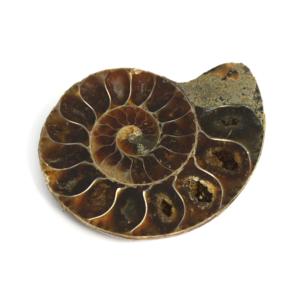 암모나이트 화석입니다. 암모나이트 특유의 독특한 문양이 나선형의 형태로 되어 있으며 화석의 문양과 결을 감상할 수 있습니다.