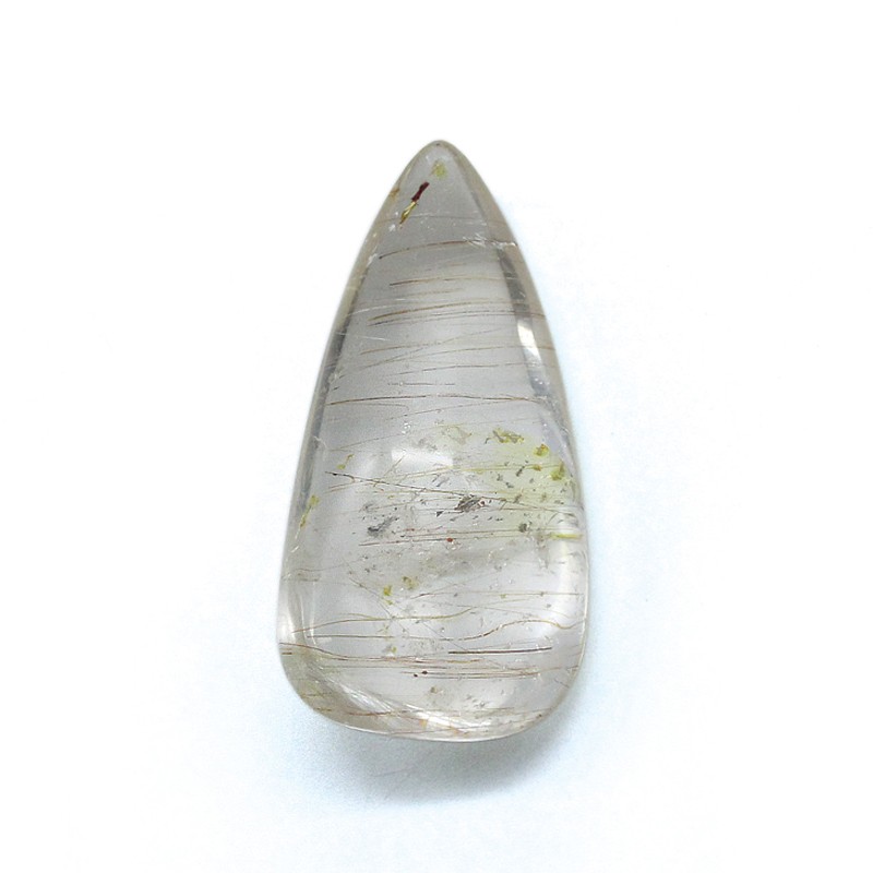흰 무영 수정 중 적색이나 금색의 침상이 들어있는 것이 있다.