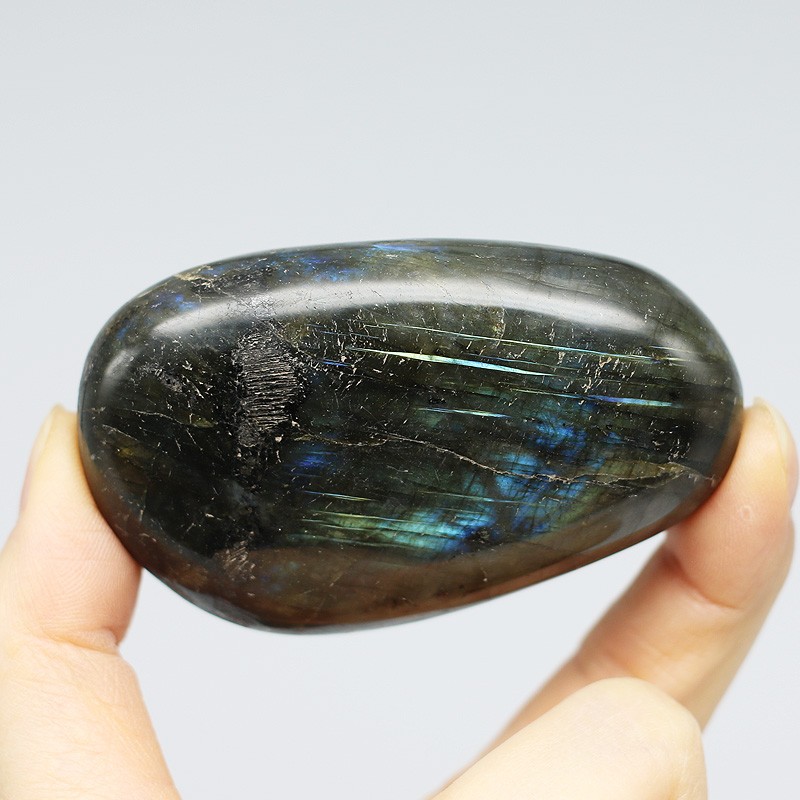 청색·녹색의 섬광을 발하는 라브라도라이트 팜스톤입니다.