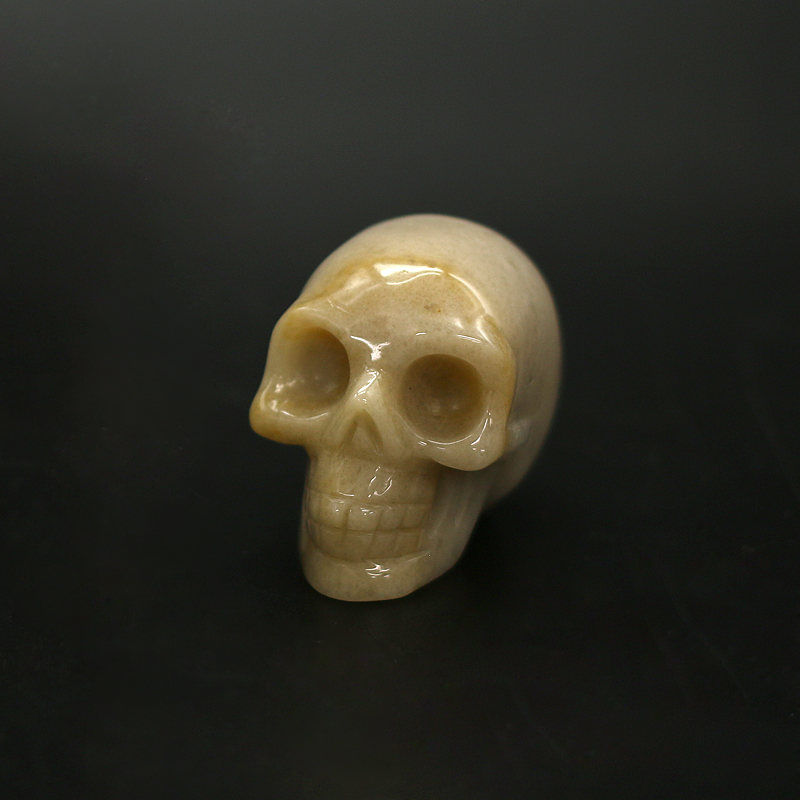 정교하게 만들어진 해골모양의 황옥 원석입니다. 각자의 원석마다 얼과 색감, 무늬가 달라 세상에서 하나뿐인 원석입니다.