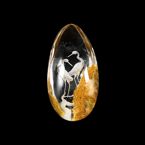 백수정 백로한쌍 원석입니다. 도톰하고 투명한 백수정 원석의 뒷면을 조각하여 다정한 백로 한쌍이 나무 위에서 쉬는 모습을 감상할 수 있도록 제작하였습니다.