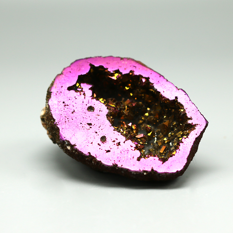 둥근 아게이트 원석을 반으로 자른 모양이며, 내부표면에 백수정 원석이 자리하고 있습니다.