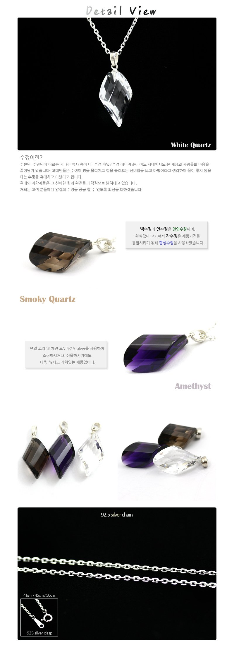 특수컷트 수정 목걸이입니다.옵션에서 수정의 종류 및 사이즈를 선택해주세요.