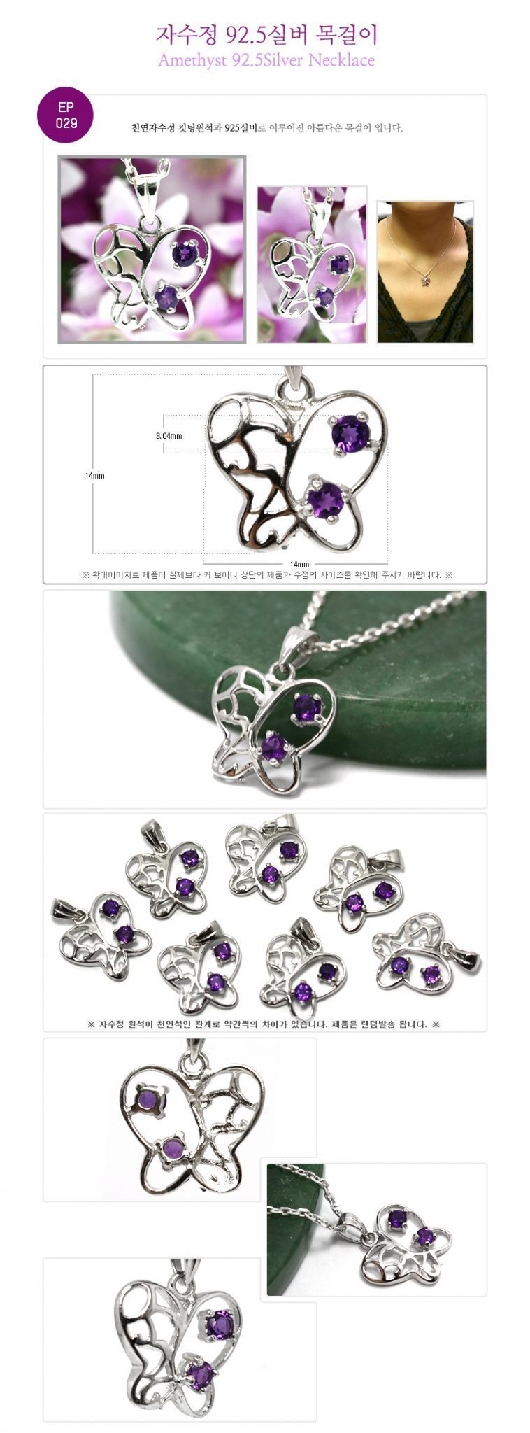 제품명 : 자수정 925 실버 목걸이