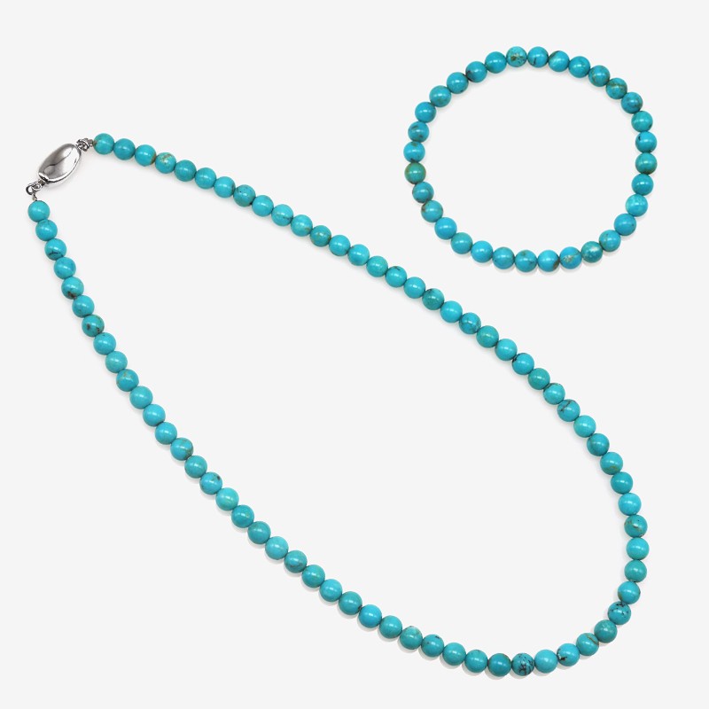 터키석 목걸이 팔찌 세트(6mm) HSNB-231446