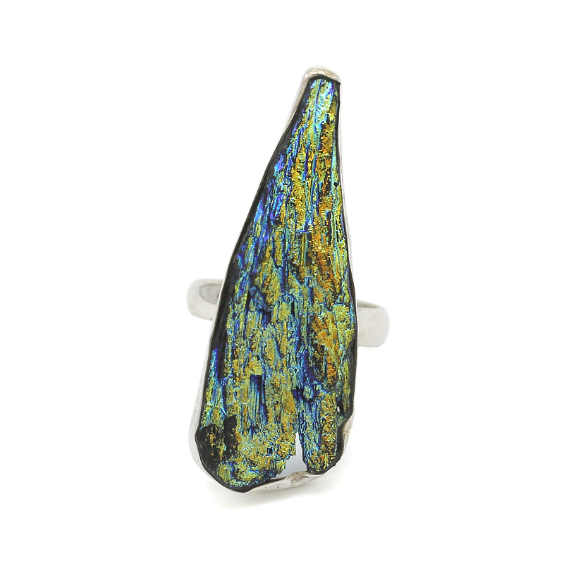 천연 백수정에 금증기를 쐬어 레인보우 오로라 컬러로 나타내었습니다.
