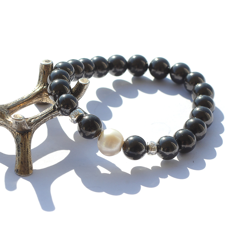 진주알이 포인트가 되어 더욱 멋스러운 팔찌입니다.