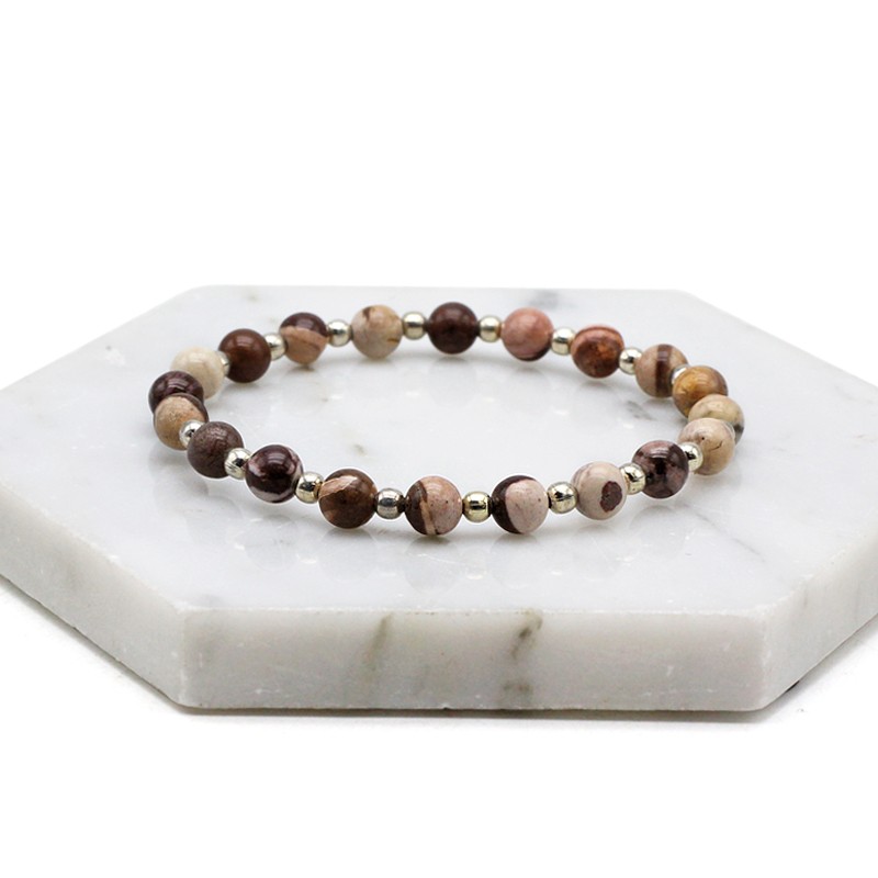 천연무늬가 매력적인 무카이트 원석에 은볼이 포인트로 매치된 팔찌입니다.