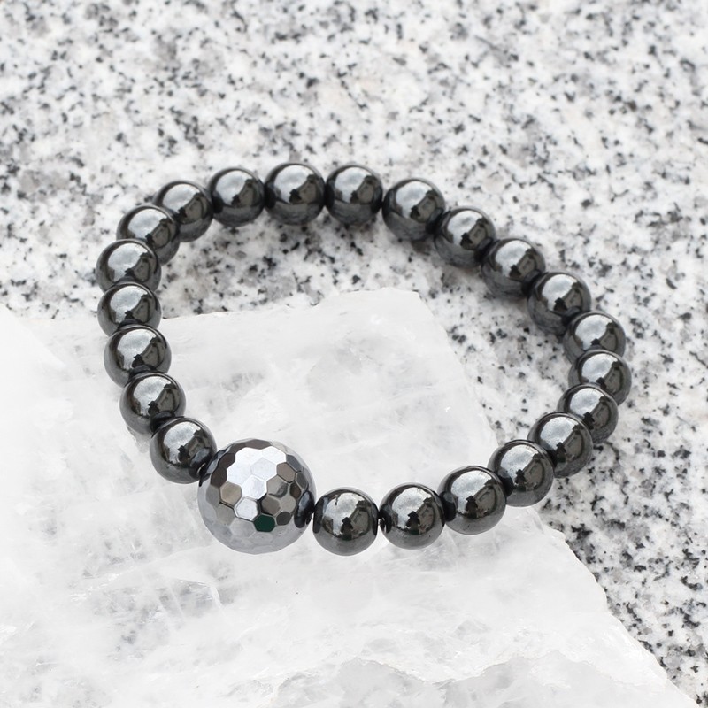 테라헤르츠와 헤마타이트로 엮어진 팔찌입니다.