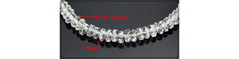 5~6mm 히라cut 백수정을 보기좋게 셋팅한 제품으로 기본사이즈 는 팔찌19cm/21cm 입니다 * 고리장식은 알러지나 변질이 없는 티타늄장식을 사용했습니다. *목걸이 길 이, 팔찌 길이를 구입전에 상담하시면 정확한 사이즈로 구입 하실수 있습니다. (대표전화 063-835-0055) *착용중 알이 깨지거나 조립부분이 풀릴 수 있습니다.