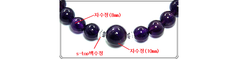 * 8mm/10mm 자수정비드와 s-top백수정을 매치시킨 제품으로 팔찌 19cm/21cm입니다 * 고리장식은 알러지나 변질이 없는 티타늄장식을 사용했습니다. * 목걸이 길이, 팔찌 길이를 구입전에 상담하시면 정확한 사이즈로 구입 하실수 있습니다. (대표전화 063-835-0055) * 착용중 알이 깨지거나 조립부분이 풀릴 수 있습니다.