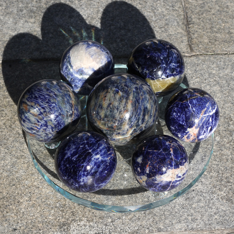 푸른빛의 소다라이트만 골라서 만들어진 고급스러운 느낌의 칠성진입니다 .