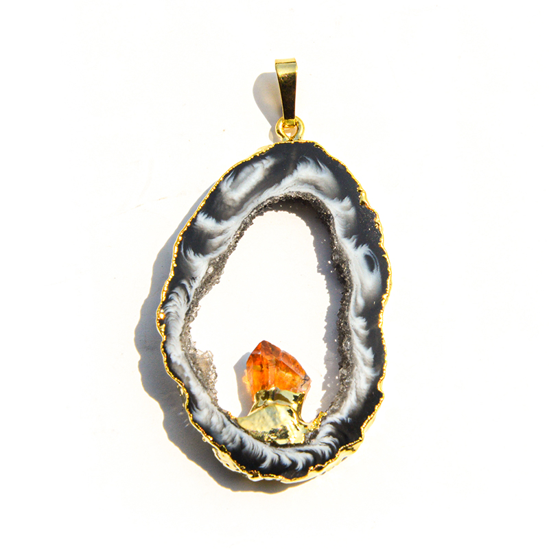 아게이트 팬던트입니다. 가운데 장식은 천연 황수정입니다.