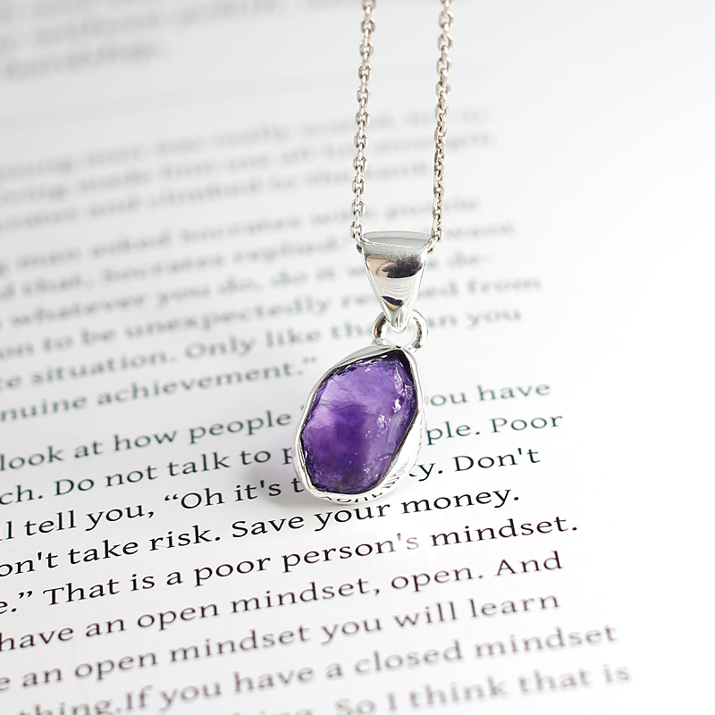 투박하면서도 자수정 원석 그대로의 아름다움을 담은 펜던트입니다.