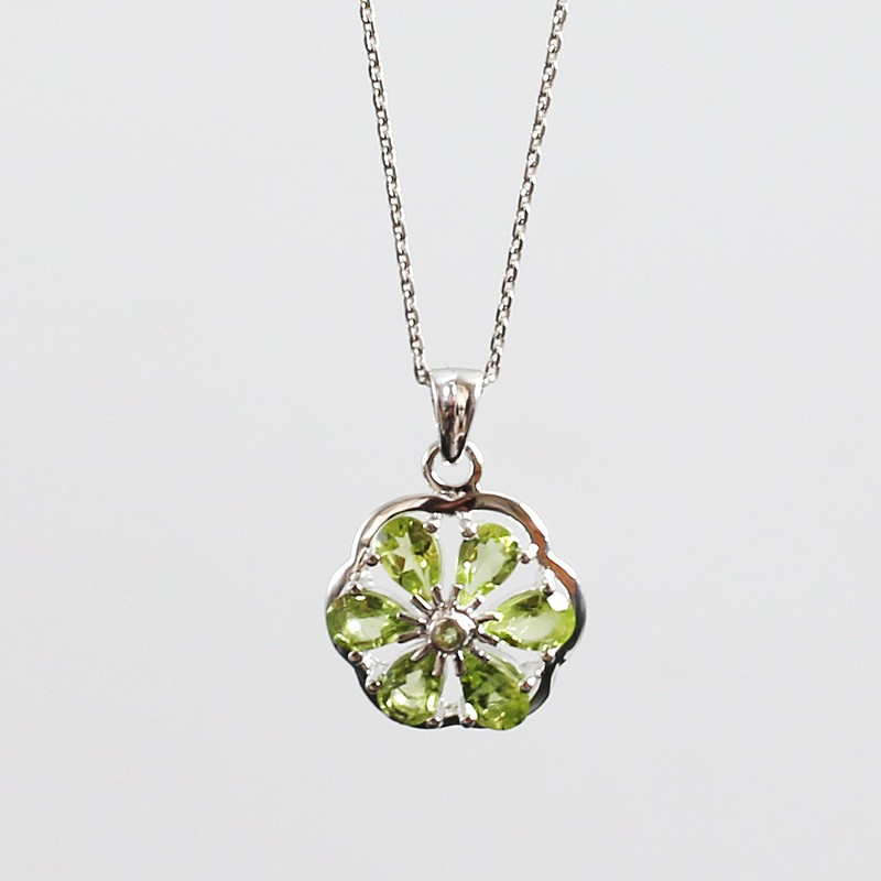 페리도트 원석이 셋팅된 꽃 모양의 실버 펜던트입니다.
