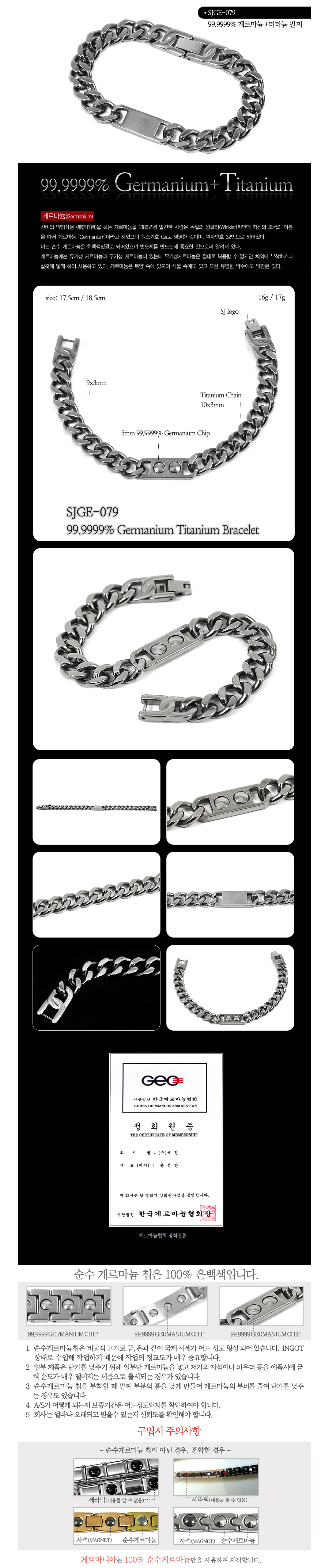제품명 99.9999% 게르마늄 티타늄 팔찌