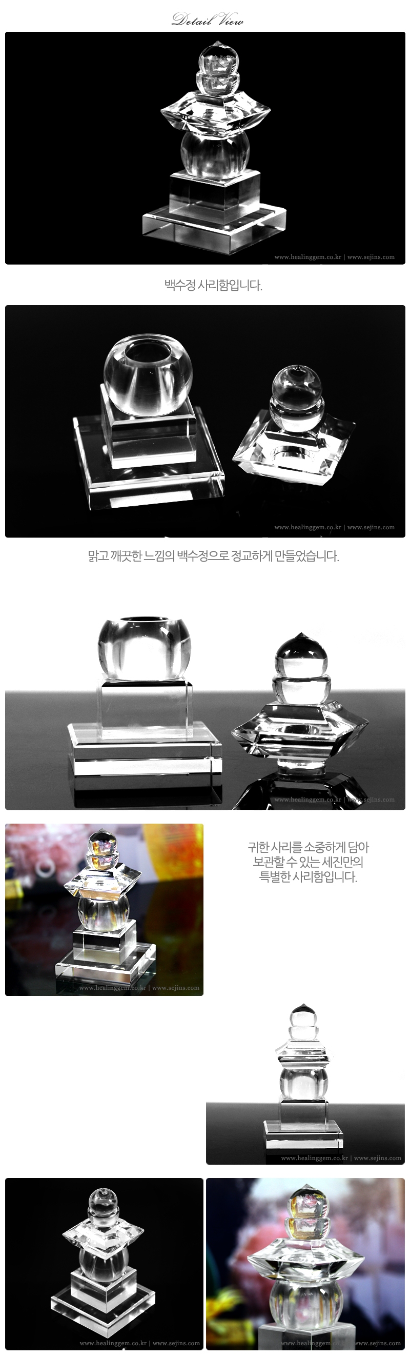 +백수정이란? 석영의 현정질을 수정이라 부르는데 그 현정질은 육정계로 대표되며, 결정이란 말은 수정의 결정으로 다 될 정도이다, 이 중에서 백색 투명한 것을 수정 혹은 백수정이라 부르며 산지에 따라 아리조나 다이아몬드, 다이아몬드, 코니쉬 다이아몬드 등의 명칭으로 쓰인다. 일본에서는 오래전부터 집을 지을 때 건물의 4모퉁이에 수정볼을 땅에 묻고 집을 짓고 있다. 이 의미는 여러 가지로 해석할 수 있다. 지진이 많은 일본에서 지진이나 재앙에 대한 부적의 개념으로도 백수정을 사용 할 수도 있고,
