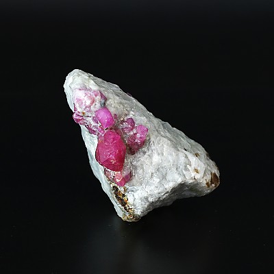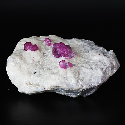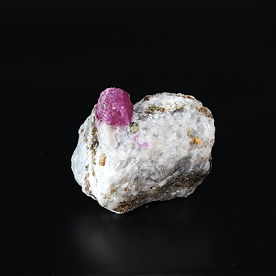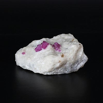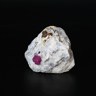 흰색 대리석 모암 속에 그대로 박혀 있는 천연 루비 원석입니다. 루비의 내포물 중, 망간 성분이 있어 UV조명을 비추면 루비의 색상이 더욱 붉어지는 모습을 확인 할 수 있습니다.
