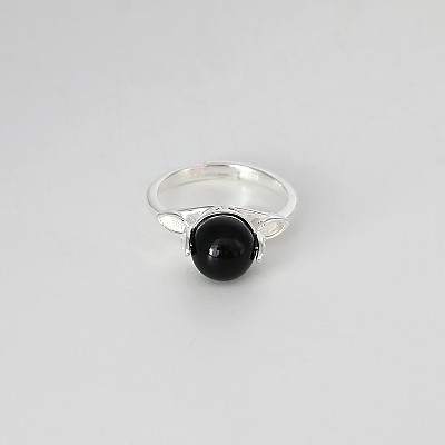 고급스러운 천연원석 비즈와 실버 볼 장식으로 제작된 블랙 스피넬 비즈 반지입니다.