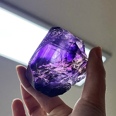 한손에 쥐어지는 크기로 자수정의 얼과 결을 감상하실 수 있습니다.
