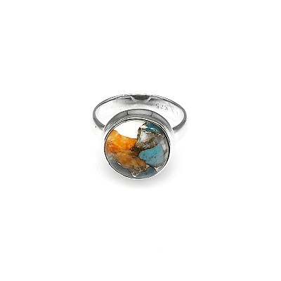 오렌지빛의 정열적인 스파이니 오이스터와 하늘은 닮은 터키석, 그리고 그 사이를 흐르는 찬란한 코퍼(구리)의 조화로, 서로 다른 자연의 조각들이 만나 세상에 단 하나뿐인 예술적인 패턴의 원석 반지입니다.