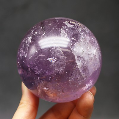 은은한 보랏빛과 천연의 얼이 돋보이는 자수정 볼(구)입니다. 좌대 구입을 원하시는 경우 옵션에서 선택해주세요.